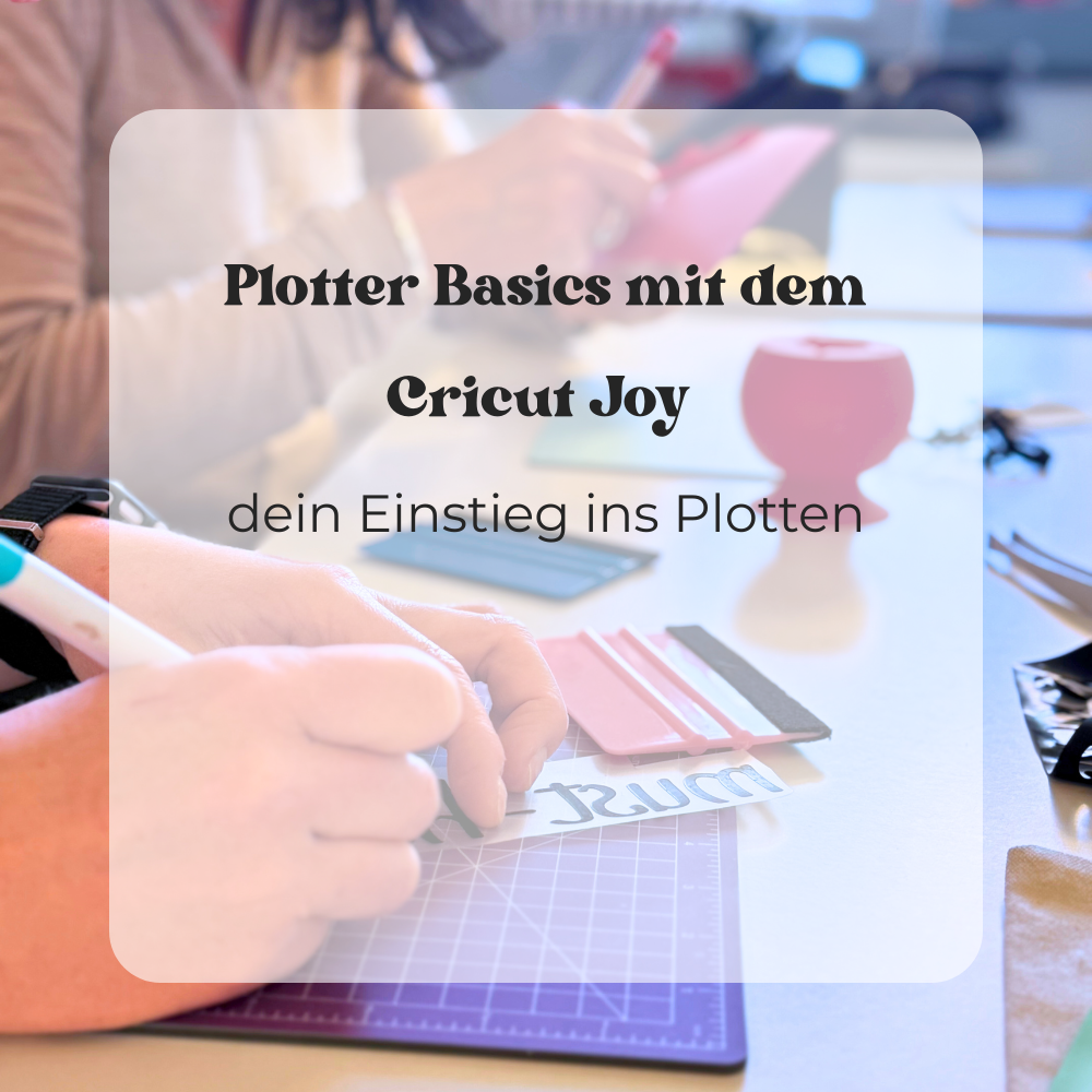 In unserem Workshop „Plotter entstauben – dein Einstieg mit dem Cricut Joy“ widmen wir uns gemeinsam den Plotter Basics mit dem Cricut Joy, ganz ohne Druck, Frust oder Technik-Kauderwelsch. Statt stundenlang YouTube-Videos zu schauen, bekommst du hier eine verständliche Einführung, praktische Übungen – und vor allem: eine kreative Auszeit in entspannter Atmosphäre.