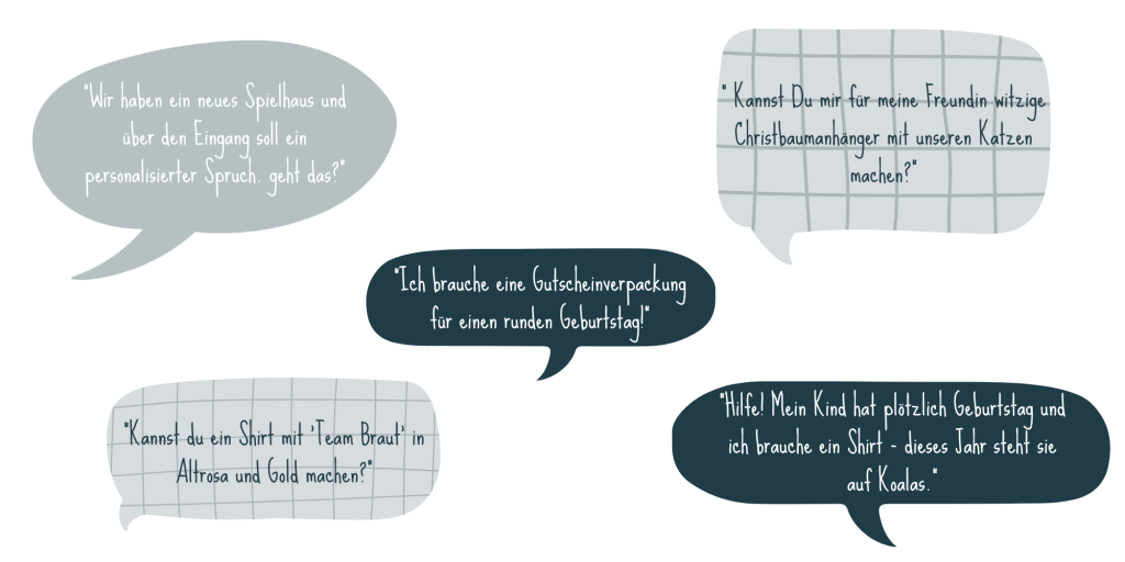 Manche Geschenke, Dekoideen oder besonderen Wünsche passen einfach in keinen Onlineshop. Und genau dafür bin ich da.